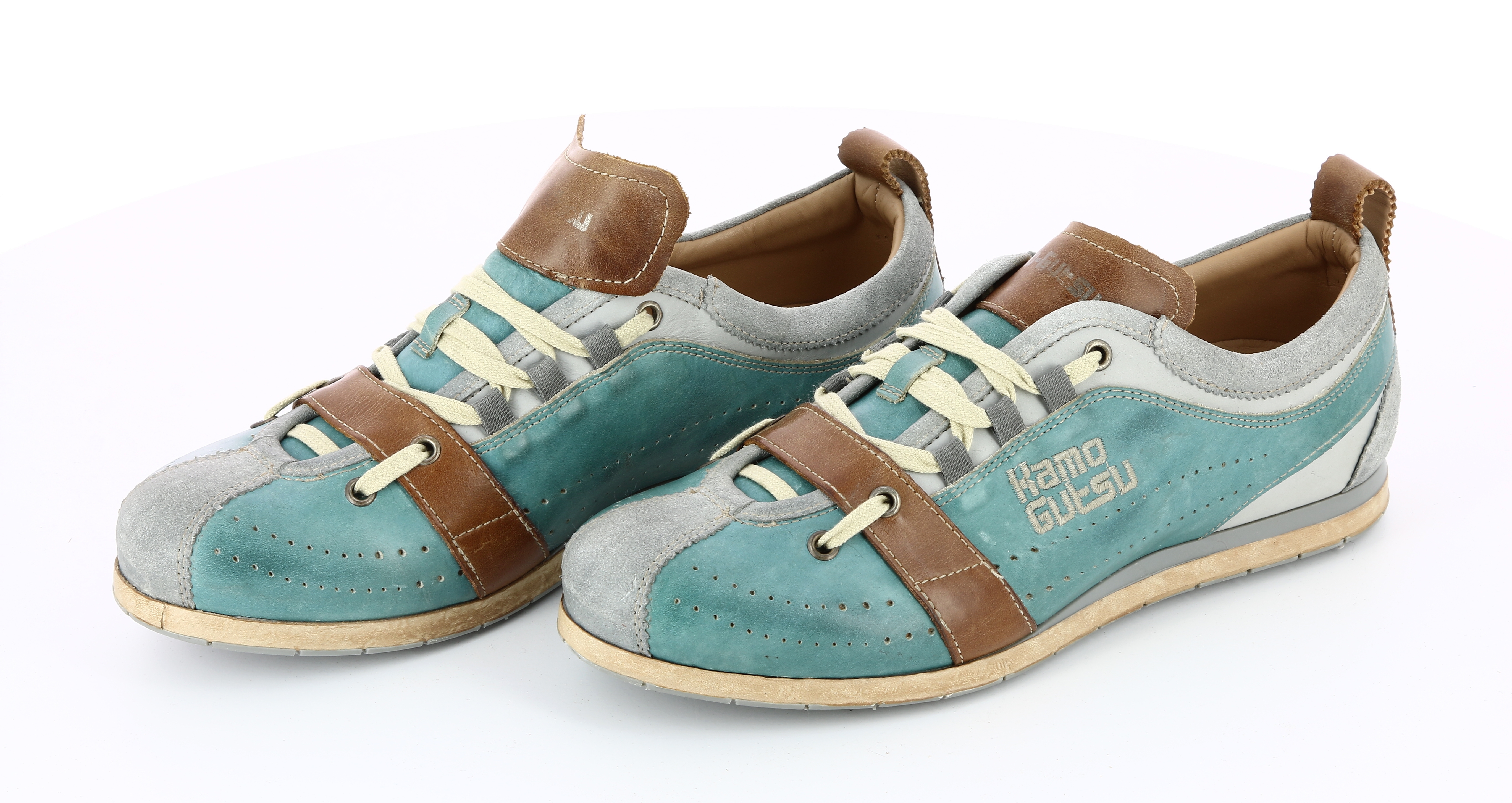 Tifo 017 - Der Klassiker schlechthin. Und doch kreieren die Designer immer wieder neue Lederkombinationen. Und immer wieder sind sie harmonisch und gelungen.  Hier in einer frischen  GRAU-Blau-Variante. Die Oberfläche dieses gewaschenen Leders präsentiert eine lebendige Struktur. Gut zu erkennen in unserer 360°-Ansicht im Zoom-Modus. Ein sportlich-edler  Kamo Gutsu.  Hinweis: Dieser Schuh fällt  NICHT  grösser aus.  42  ist 42 !